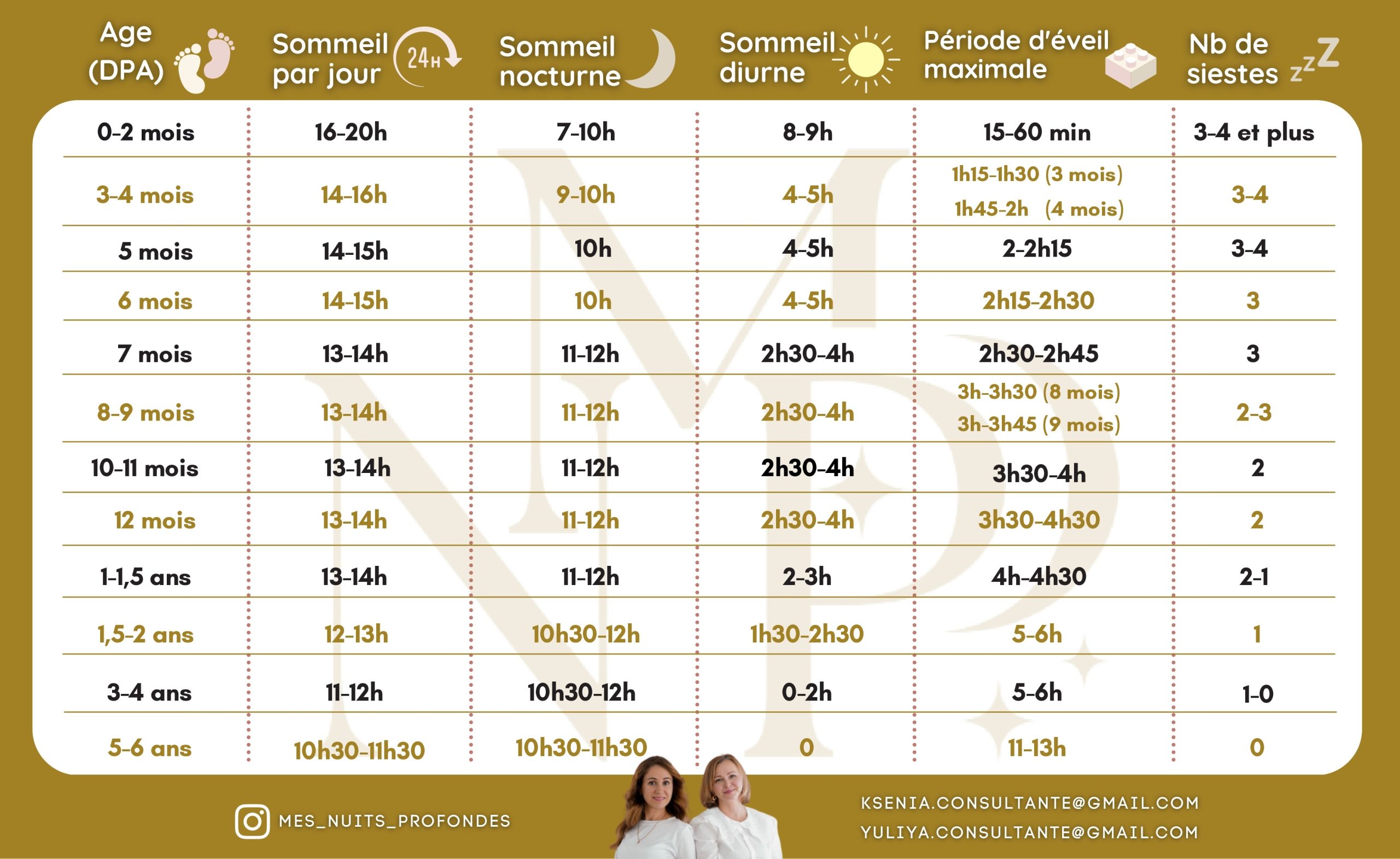 Quant à notre tableau MesNuitsProfondes, il est basé sur les informations des spécialistes les plus anciens et les plus renommés dans le monde, qui ont été ajustées selon notre expérience depuis 7 ans de pratique.